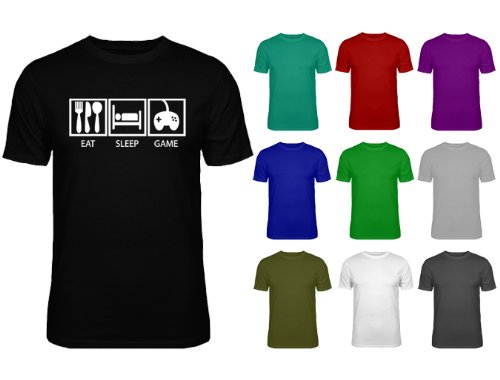Mens t-shirt with 'Eat Sleep Game' white print and artwork on front!