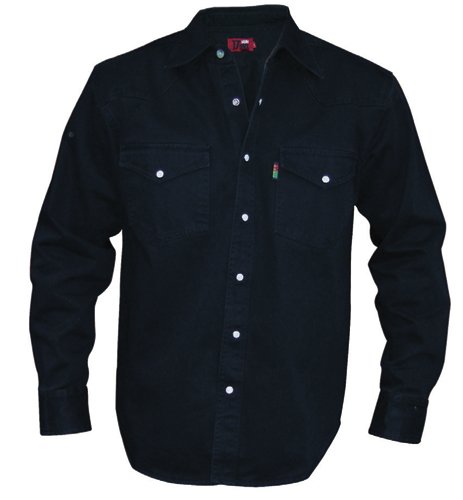 A Fantastic Black Denim Shirt From Rockford. Constructed From 8oz Enzyme Washed 100% Cotton Denim. Press Stud Fastening and 2 Breast Pockets