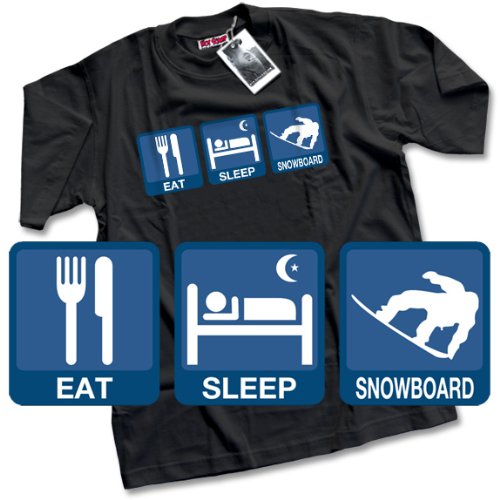 You may have the skill or you just love the thrill, but snowboarding can get your juices flowing in every direction. From breathtaking views to close encounters with trees, what's not to love? So hit the slopes this year with the 'Eat Sleep Snowboarding' t-shirt along with something a little warmer on the outside!