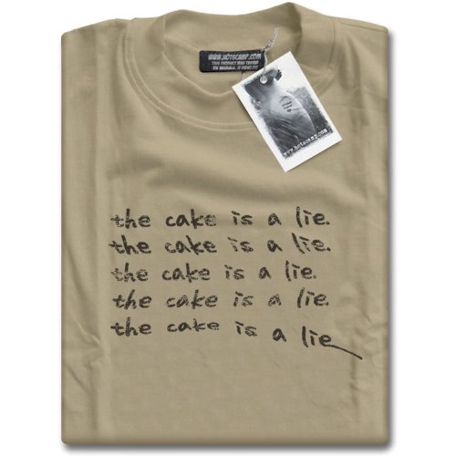The 'Cake is a Lie' t-shirt pretty much says 'It's too good to be true'! The phrase was made popular through the X-Box 360 and PS3 game 'Portal' where you would be warned before any manipulation tactics were deployed. Whether you're a gamer or not, the 'Cake is a Lie' t-shirt will remind you to keep an eye out for danger!