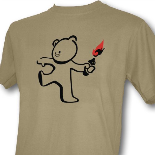 Notoriously famous for hijacking buildings with graffiti street art, Banksy's creative genius is once again released in this Banksy Molotov Cocktail Teddy design. If you love his quirky style which often has a deep and hidden meaning or symbolism, then this terrorist teddy should be all yours. It also makes a nice gift for a Banksy fan.